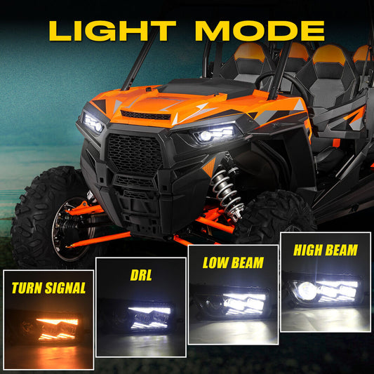 Pair LED Headlights Turn Signal Lamps DRL Plug&Play for Polaris RZR 900 XP 1000