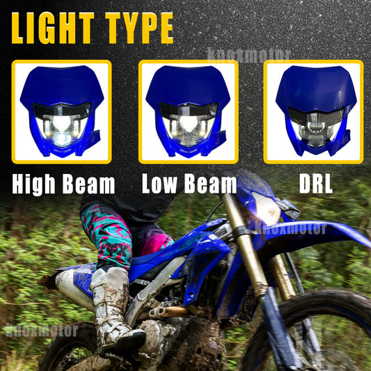 LED Headlight with DRL Hi/Low Beam w/ Blue Fairing for Yamaha WR 450 450F WR 250 250F 2002-2025