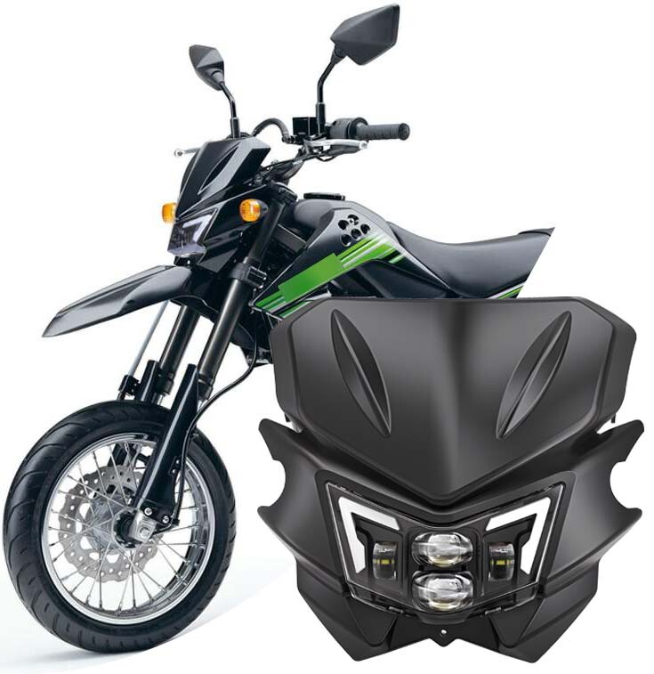 LED Headlight w/ Black Fairing High Low Beam Kit For Kawasaki KLX450R KLX125 KLX150L D-TRACKER 125