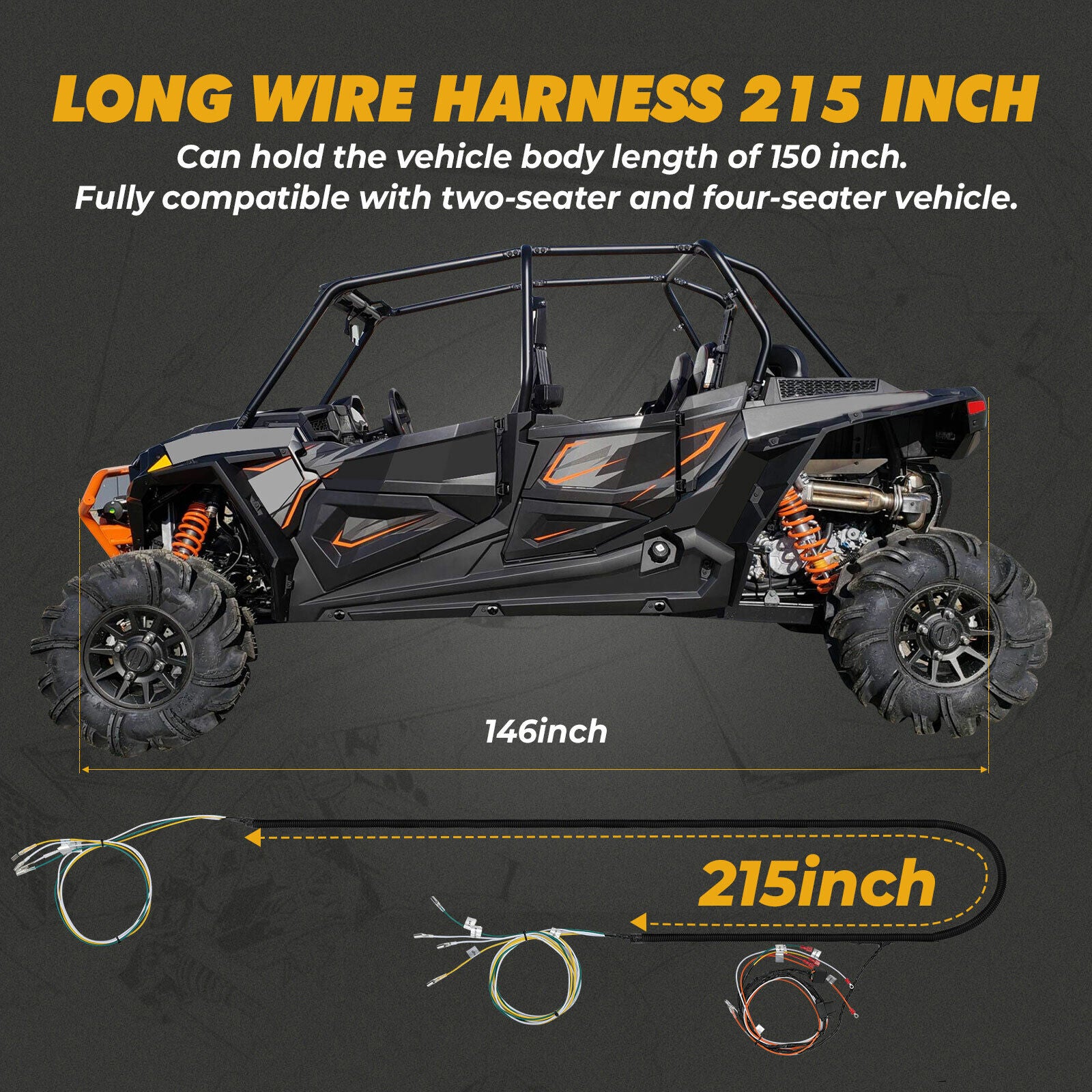 【 Upgraded wire harness length 】 - The 215-inch kemimoto turn signal kit is perfect for both 2-seater and 4-seater vehicles. UTV turn signals light kit can accommodate the whole vehicle up to 150 inches long. Color lines are marked on the corresponding installation location, improve your installation efficiency.