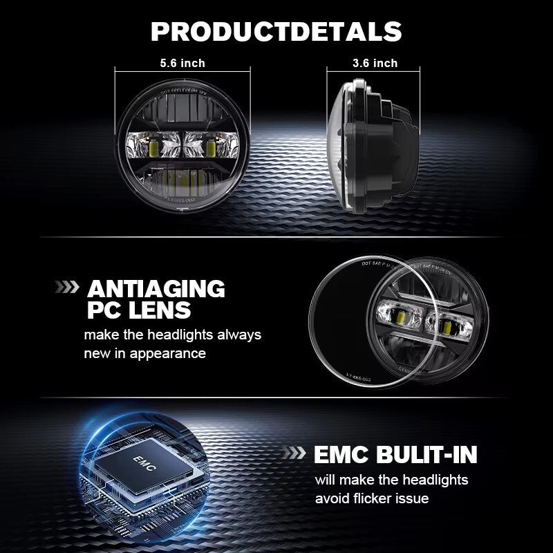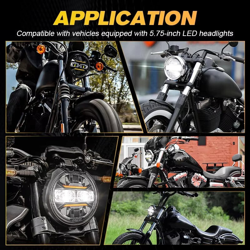 E24 DOT 5.75 inch LED Headlight with Amber DRL for Harley Davidson Dyna Street Bob Super Wide Glide Low Rider Night Rod Train Sportster Iron 883 Indian Scout Triumph