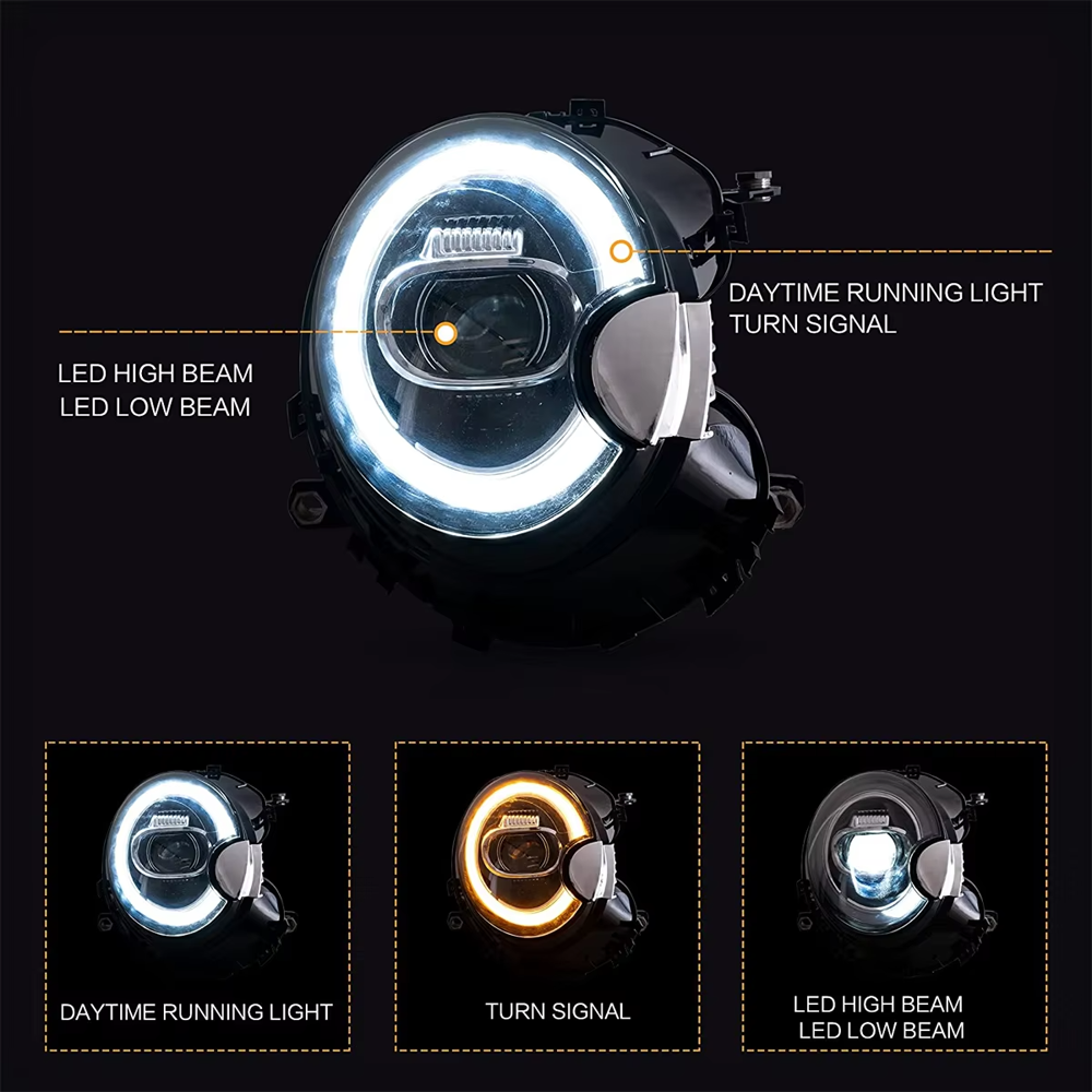 Automotive Headlights Assemblies for BMW Mini Cooper R55 R56 R57 R58 R59 W/Startup 2007-2013 with Hi-Lo Beam DRL Turn Signal(2pcs)