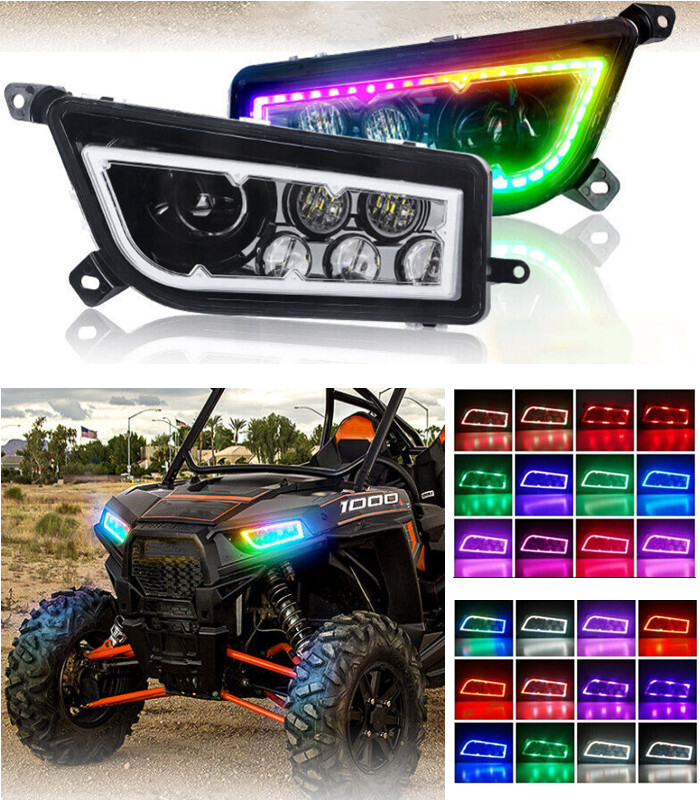 Pair ATV RGB LED Headlights Halo Angel Eye For 2014-2021 Polaris RZR 900 1000 XP
