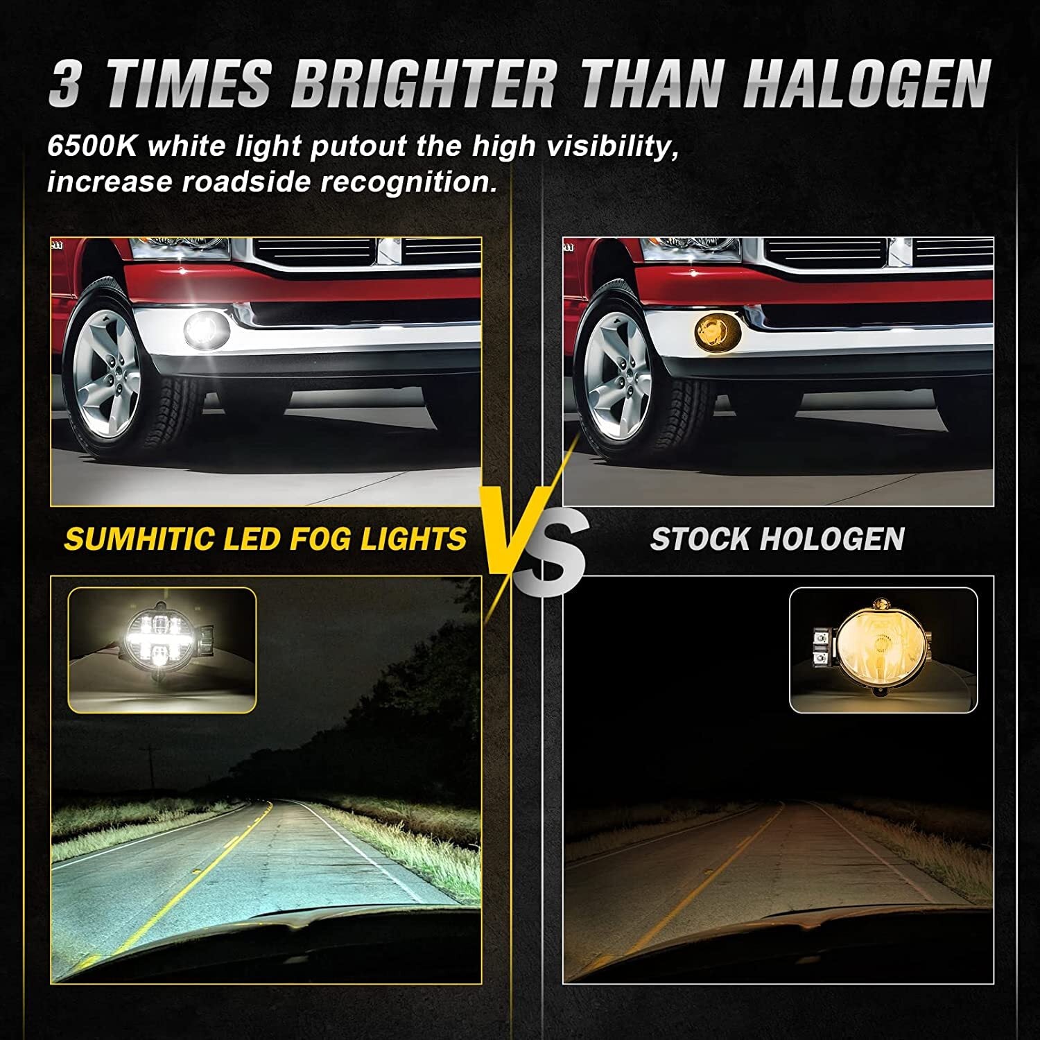 Höhere Helligkeit... Hergestellt mit 6PCS D-Form LED-Chips mit größeren Projektoren sind 200% heller als gewöhnliche LED-Projektoren, the brightness of this LED fog light is double brighter than other fog lights. Let you have clearer vision reducing the danger in the dark. Lumen: 4500LM each pair, color temperature: 6500K. It is super whiter than halogen lights.